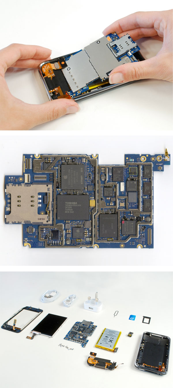 Secondo quanto si apprende dagli specialisti del sito, aprire iPhone 3G S è semplice quanto farlo con il vecchio 3G. Basta rimuovere due viti per scoperchiare la parte posteriore dell’iPhone. L’interno è identico fisicamente a quello del precedente modello e solo un occhio molto esperto è in grado di distinguere le due versioni.