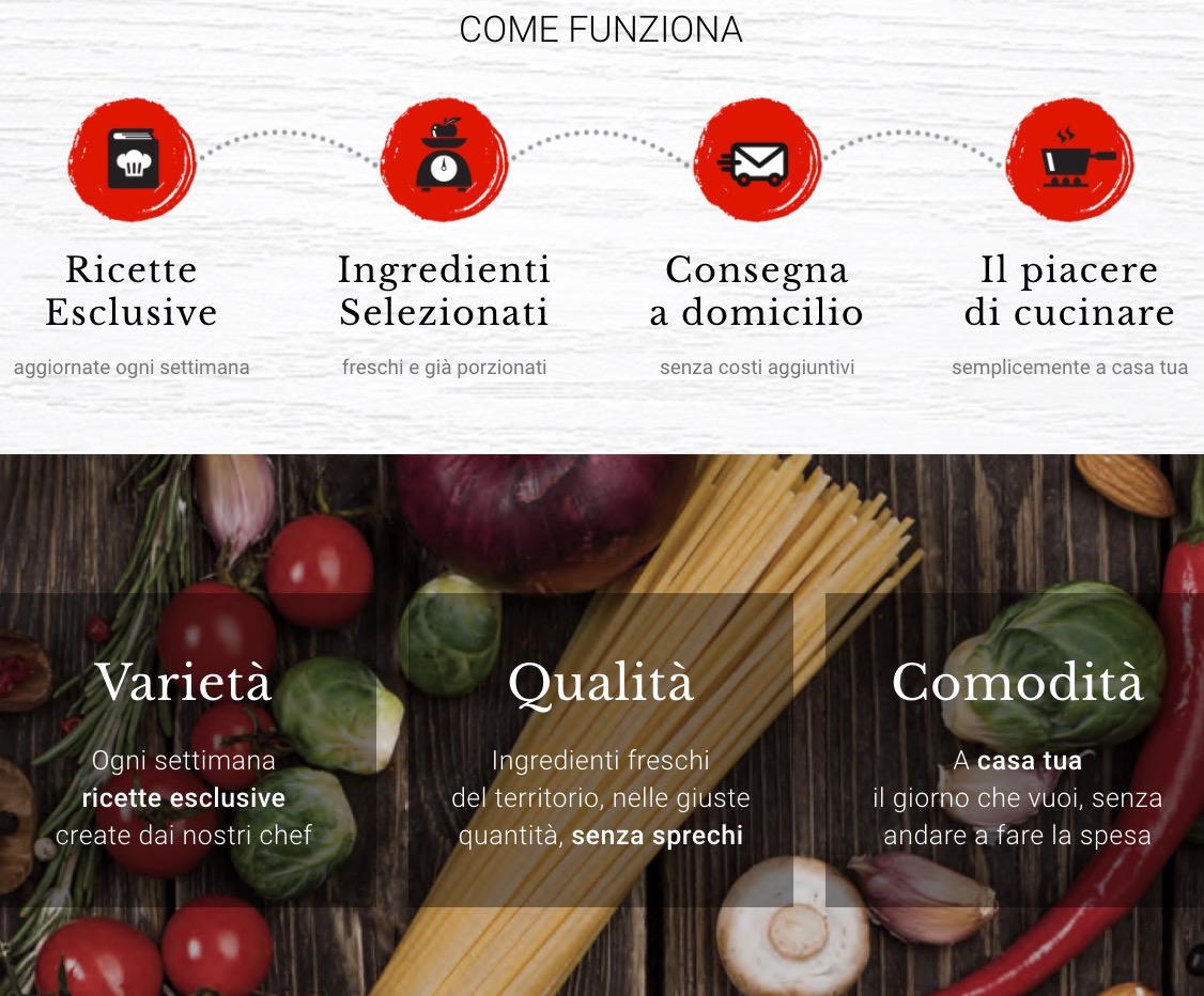 Il funzionamento è semplice: gli utenti possono scegliere sul sito le ricette con cui vogliono cimentarsi, le porzioni per pranzi o cene e andare così a comporre il box desiderato che conterrà tutti gli ingredienti per la realizzazione a casa dei piatti selezionati.