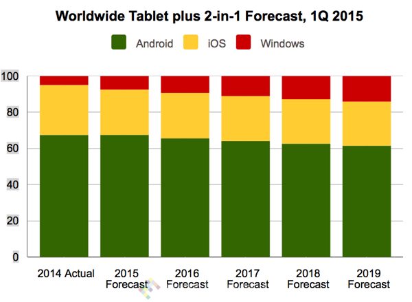 La spedizione di tablet e dispositivi 2-in-1 è proiettata a raggiungere le 221,8 milioni di unità nel 2015, una contrazione del -3.8% rispetto allo scorso anno, questo almeno secondo recenti dati elaborati da IDC. La prospettiva indicata segue due trimestri consecutivi nei quali è stato registrato un declino nelle vendite, con una modesta revisione in discesa rispetto alle previsioni precedenti che parlavano di 234,5 milioni di unità e crescita del 2,1% anno su anno. Benché IDC preveda un declino nelle vendite complessive per il 2015, la società di ricerca spiega che alcune categorie di prodotti in determinati segmenti sono pronte per registrare una forte crescita.