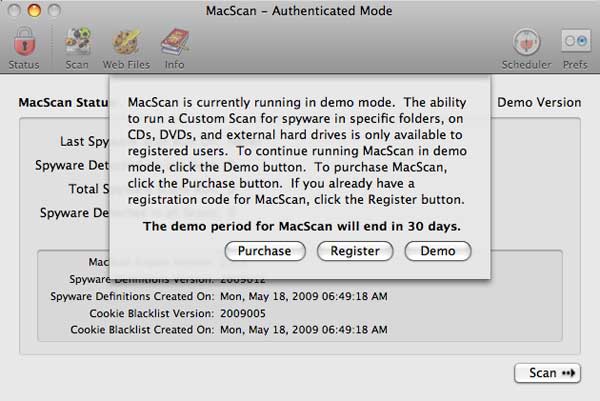 La nuova versione del programma 2.6.1 di MacScan è in grado di rilevare e bloccare anche i software malevoli di ultima generazione che circolano in rete, inoltre gli sviluppatori hanno migliorato l’interfaccia utente, ora ancora più semplice da utilizzare. La versione dimostrativa gratuita, valida 30 giorni, può essere scaricata a partire da questo collegamento diretto. Per ottenere le funzioni complete occorre acquistare la versione standard proposta al prezzo di 30 dollari, circa 22 euro nel negozio online di SecureMac. Ricordiamo infine che è disponibile anche il MacScan Famili Pack che permette di installare il software su tre sistemi al prezzo di 50 dollari, circa 37 euro. L’aggiornamento alla versione 2.6.1 è gratuito per gli utenti che già possiedono il programma, mentre chi acquista la licenza singola e desidera passare al pacchetto Family lo può fare pagando la differenza di prezzo tra i due.
