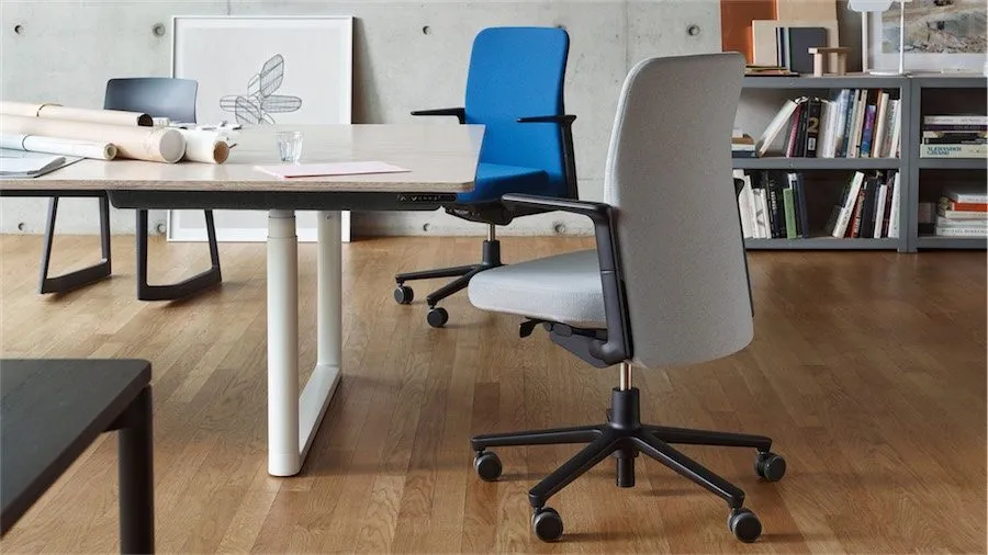 Si tratta del modello Pacific Chair proposto da Vitra, società specializzata in arredamenti, una sedia per gli uffici moderni progettata da Jay Barber ed Ed Osgerby, due noti designer industriali del Regno Unito.
