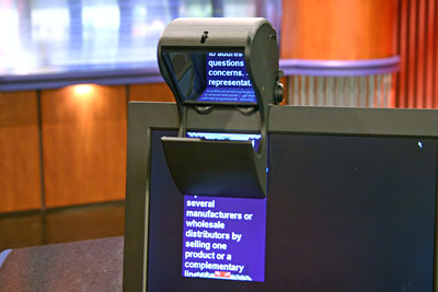 L’uso del periscopio, e del software specifico, (l’ultima release necessita di OSX Tiger, 10,4), permette di vedere al posto dell’intermediario, il testo che si vuole recitare, risultando quindi in un gobbo semiprofessionale.