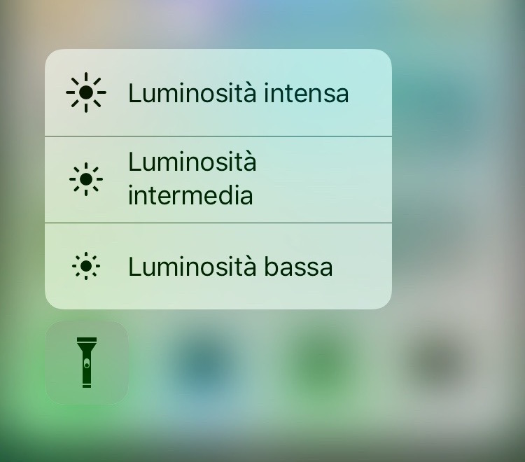 5. Cambiare intensità del Flash – Sui dispositivi con display 3D Touch è possibile regolare la luminosità del Flash LED nella modalità torcia. E’ sufficiente aprire il Centro di Controllo e premere con forza l’icona per visualizzare il menù contestuale con le modalità “bassa-media-alta” intensità.