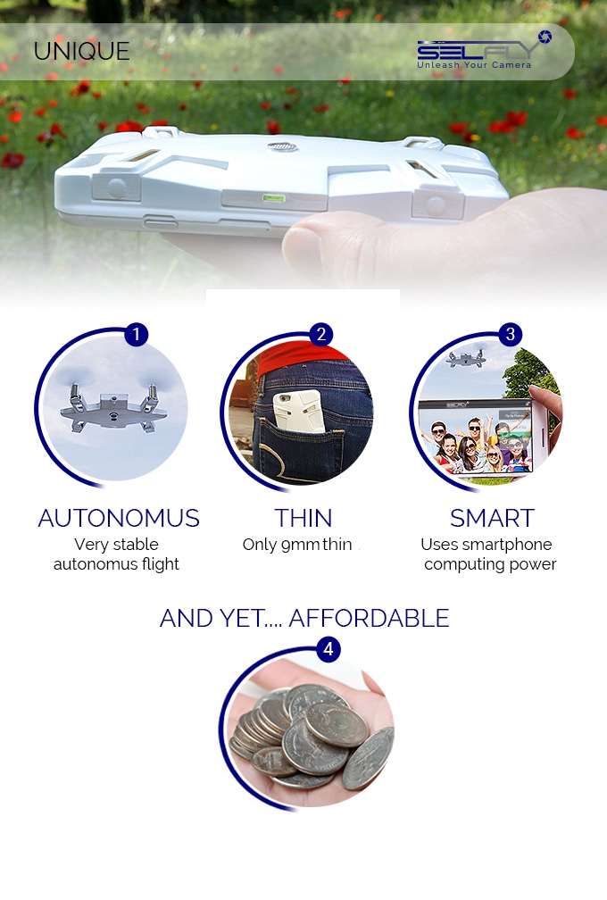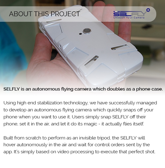 L’idea di una cover per iPhone, che si trasforma, all’occorrenza, in un drone per foto e video selfie è davvero geniale. SELFLY non è il primo esponente del genere (ci aveva già pensato AirSelfie), ma a quanto pare l’idea sta riscuotendo parecchio successo su kickstarter, dove è facile immaginare riuscirà a racimolare i 125 mila dollari richiesti. In soli 9mm di spessore, e nascosto dentro una cover per smartphone, si nasconde il piccolo quadricottero per autoscatti.