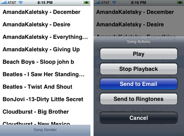 Sendsong e’ una applicazione della prolifica Erica Sadun nata come semplice programma di invio delle canzoni della parte “iPod” di iPhone e che si sta trasformando, aggiornamento in un comodo strumento per gestire anche le suonerie personalizzate.