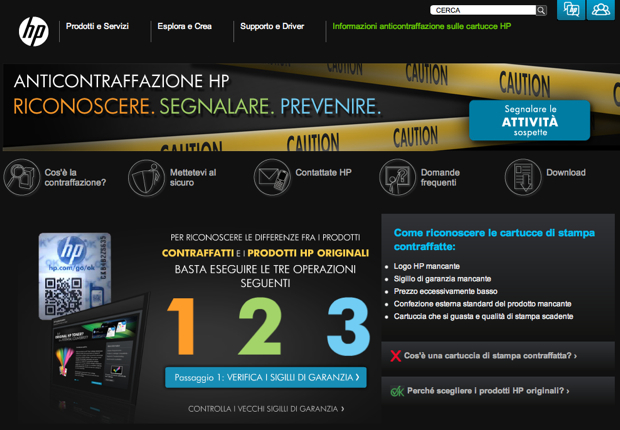 I contraffattori operando necessariamente in nero, sottraggono importanti risorse anche alle entrate tributarie degli Stati trasferendo il “conto” ai cittadini che pagano le tasse e non va infine dimenticato che, comprando prodotti contraffatti, indirettamente, si supporta il crimine organizzato”. Qui in basso il sito di HP dedicato all’anticontraffazione che spiega come riconoscere cartucce e torner non originali.