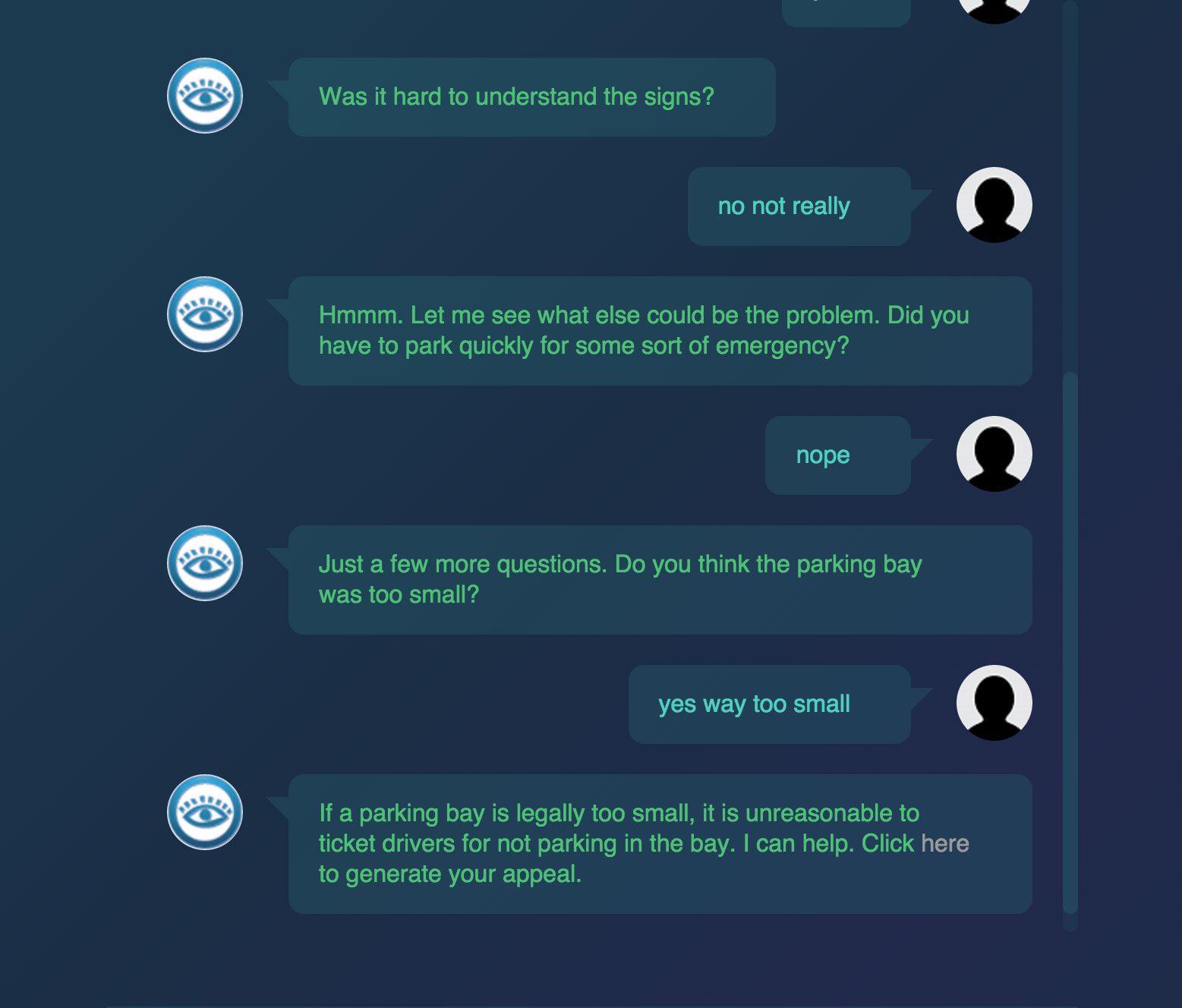 Rivolgersi a un avvocato per preparare un ricorso contro una multa potrebbe costare troppo, al punto che il gioco forse non vale la candela. Da qui l’idea di un 19enne programmatore britannico, Joshua Browder, che ideato un “bot” (un programma autonomo che fa credere all’utente di comunicare con un’altra persona umana), in grado di occuparsi dell’iter burocratico, capire se è possibile presentare ricorso o no, se vi sono vizi di forma, ecc.