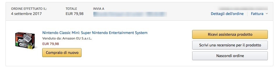 Per farlo la procedura è molto semplice: basta collegarsi al proprio account Amazon, ricercare l’ordine effettuato e sfruttare l’apposita opzione “Ricevi assistenza prodotto” indicata con il classico tasto giallo, come visibile nell’immagine di seguito per un altro prodotto selezionato.