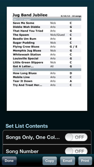 In secondo luogo, potremo facilmente condividere la scaletta creata con tutti i membri della band tramite mail, tramite SMS, tramite Facebook o, se tutti hanno un dispositivo iOS con l’applicazione installata, si potrà gestire lo stesso file in wireless in modo da permettere ad ognuno di vedere le modifiche in tempo reale e magari apportarne di nuove.