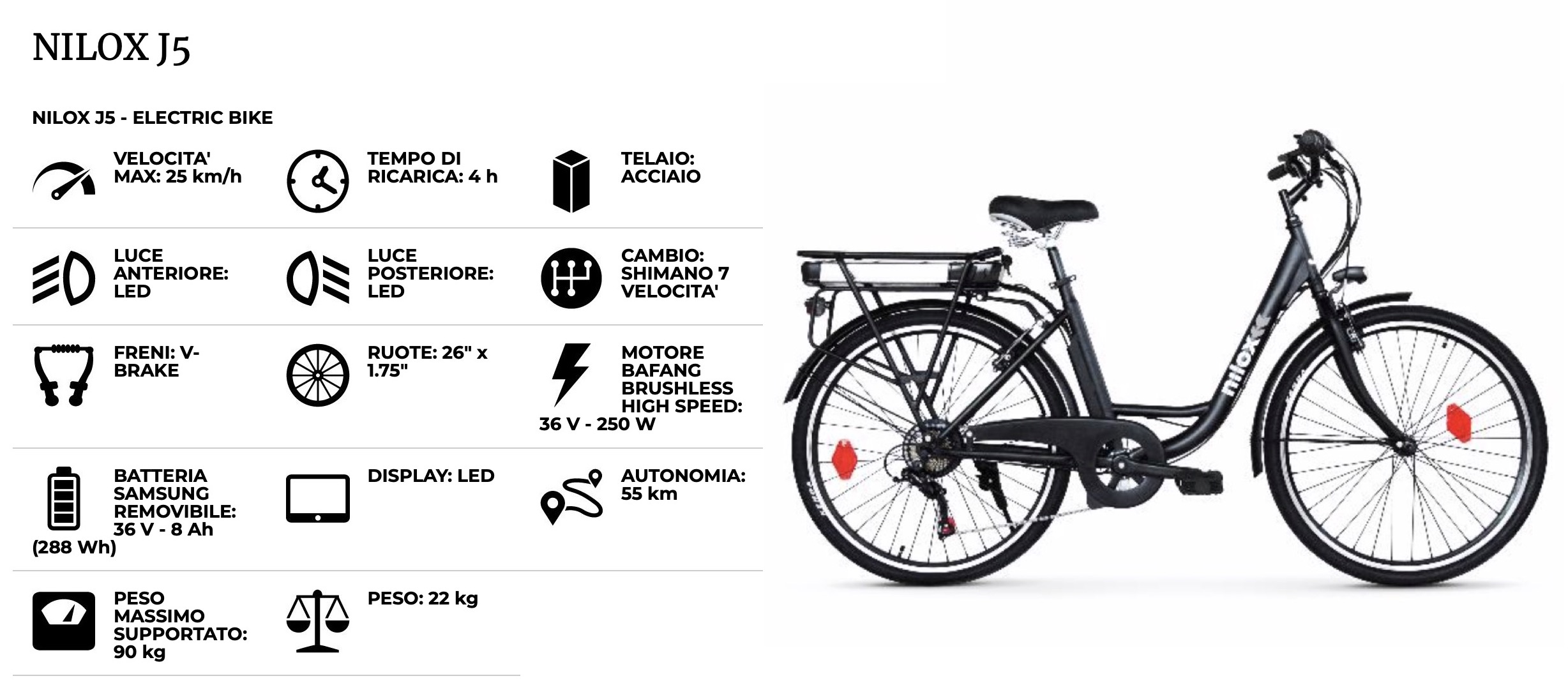 Facilità di guida, stile e funzionalità distinguono la bici elettrica a pedalata assistita Nilox J5.