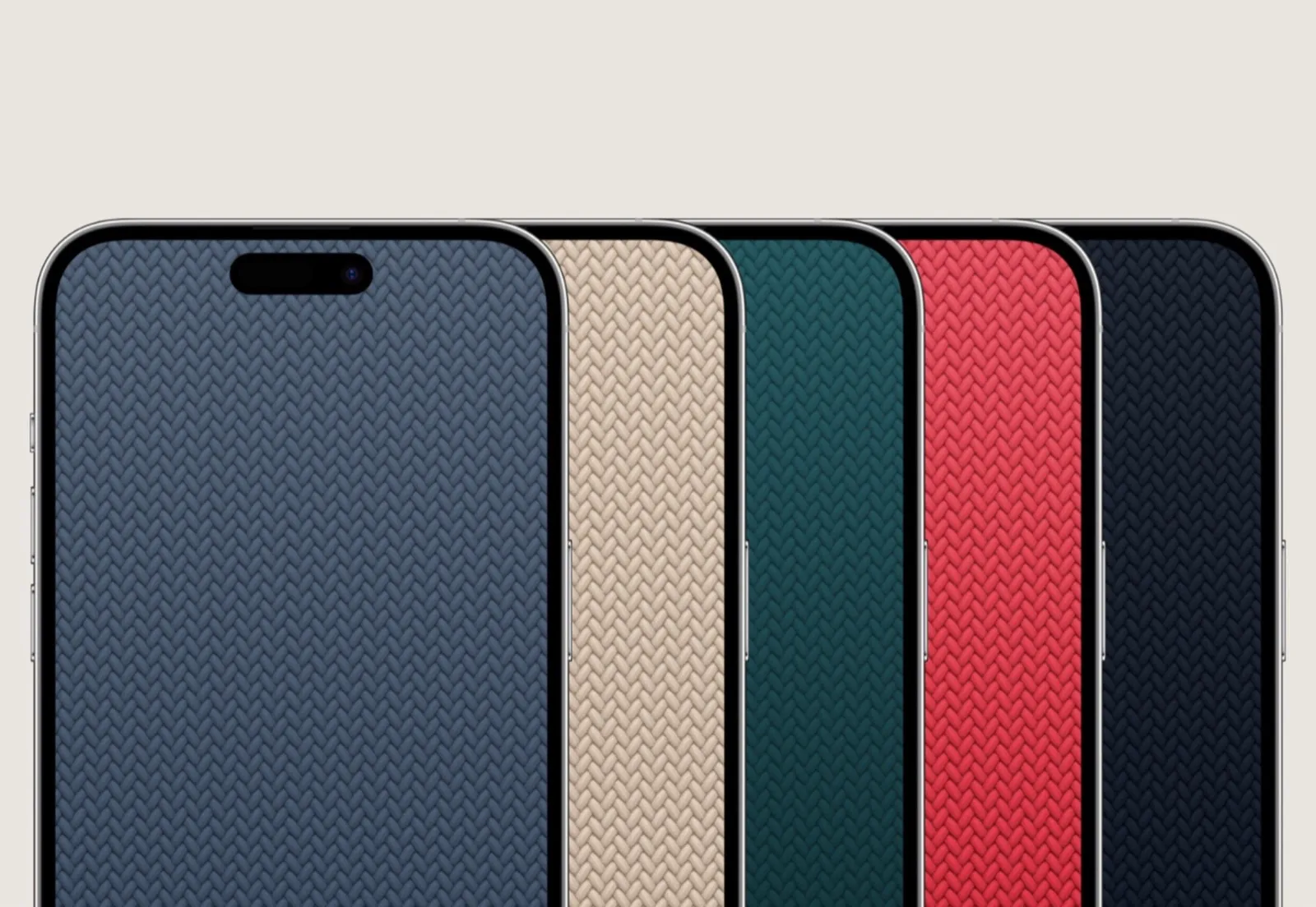 Ed è proprio a queste che si affiancano le nuove immagini, replicando le colorazioni verde giungla, blu ardesia, beige, mezzanotte e rosso con tanto di simulazione dell’effetto del tessuto intrecciato.