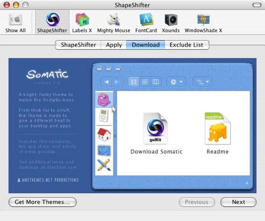 Unsanity ha reso disponibile la versione 2.5 di ShapeShifter, popolare applicazione shareware (20$) che consente di cambiare e sconvolgere anche totalmente l’aspetto standard delle finestre, delle icone, dei menu, dei bottoni e del desktop di Mac OS X scegliendo da un elenco sterminato e variopinto di “Temi” disponibili on-line.