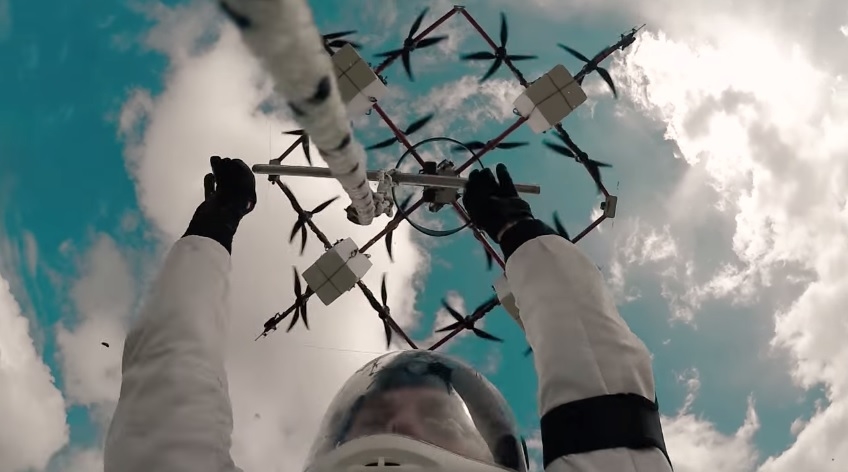 Nell’occasione si è trattato di un drone a 28 rotori di Aerones, che già nel mese di dicembre scorso era riuscito a far letteralmente volare un uomo su snowboard. Questa volta l’impresa sembra ancor più paurosa. In volo fino alla cima di una torre, è servito come “trampolino” di lancio per il temerario protagonista, che si è lasciato andare nel vuoto, lanciandosi proprio dal drone.