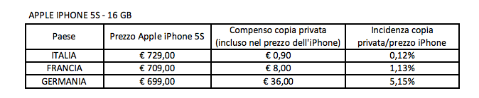 è sufficiente visionare i dati (disponibili a tutti e dunque conoscibili con un minimo di diligenza) per comprendere che in Italia il prezzo degli smartphone è più alto di ogni altro paese comparabile ancorché il compenso per la copia privata sia enormemente più basso
