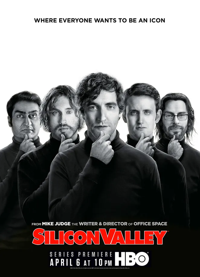 Non poteva mancare in Silicon Valley, nuova serie tv che racconta in salsa geek le vicende di un gruppo di giovani programmatori alle prese con una startup e il grande sogno di sfondare nel mondo dell’informatica a Palo Alto, il riferimento a Steve Jobs. La scelta dell’immagine che è anche un’icona dell’icona stessa della Silicon Valley, sembra essere una scelta obbligata per la locandina della prèmiere: “Where everyone wants to be an icon” è, infatti, la frase che accompagna l’immagine dei sei programmatori in dolcevita nero.