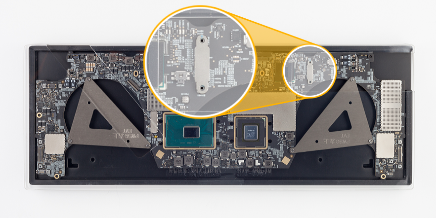 Il francese Journal du lapin ha pubblicato alcune foto che mostrano il connettore integrato nei MacBook Pro 13″ e 15″ che, in caso di necessità, consente ai centri di assistenza di recuperare i dati presenti sugli SSD saldati direttamente sulla scheda logica dei portatili.