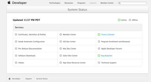 A distanza di diversi giorni, Cupertino non ha ancora sistemato definitivamente la situazione che fa solo lenti passi avanti come dimostra una pagina web di tracking creata per visualizzare il punto della situazione relativamente al ripristino del portale dedicato agli sviluppatori.