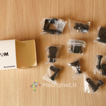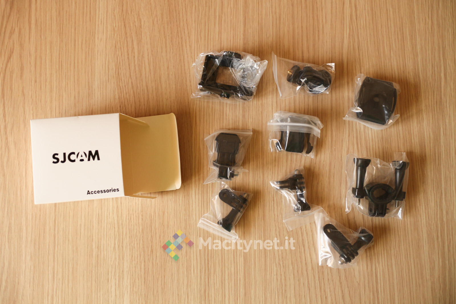 Non ci dilungheremo nel descrivere il parco accessori incluso nella confezione di una o dell’altra. Entrambe offrono infatti lo stesso numero e tipologia di attacchi che abbiamo per altro trovato in passato nella SJ4000. Vi rimandiamo quindi a quella recensione cliccando qui nel caso vogliate approfondire questo particolare argomento.