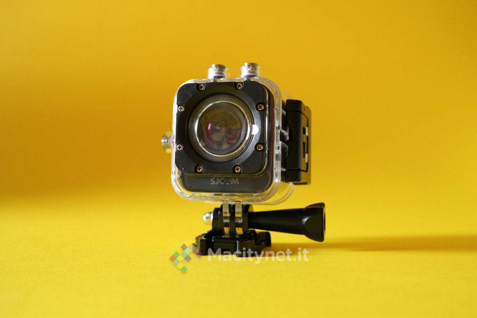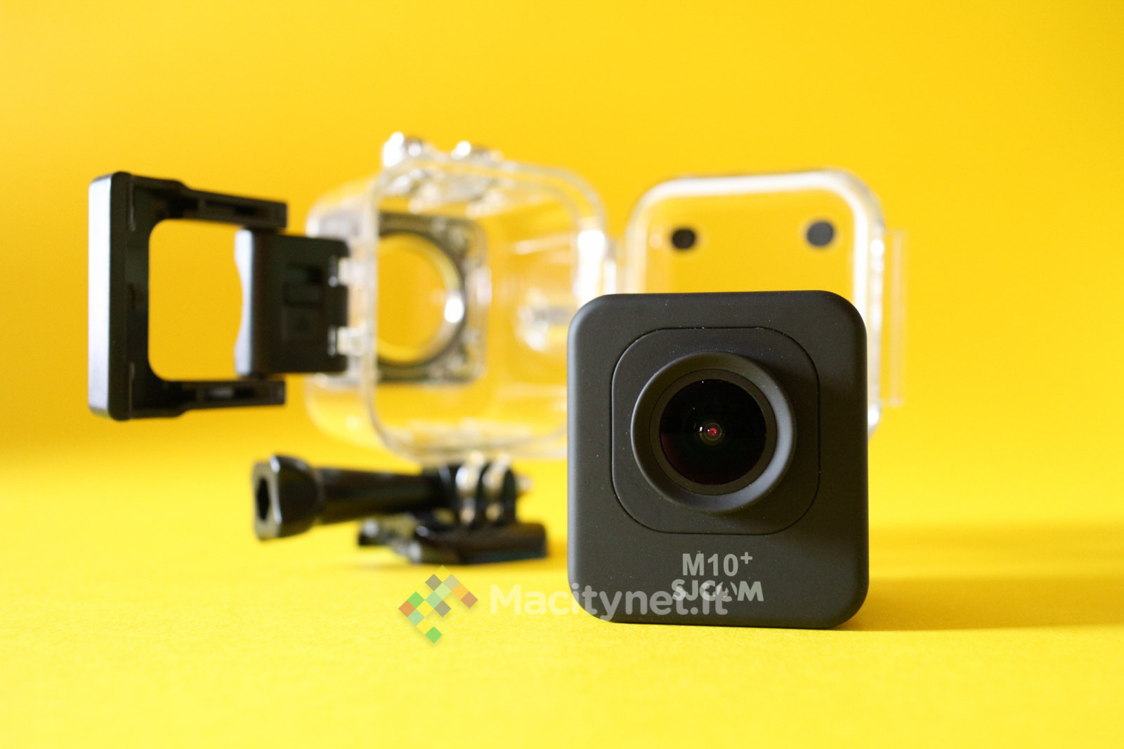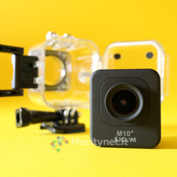 Per quanto riguarda la M10+, l’unica differenza è per l’appunto nella forma della action camera, cubica, che ricorda da lontano quella di Polaroid Cube e GoPro Hero 4 Session. Parallelamente a questo quindi, anche la custodia subacquea è su misura per la camera, mentre la tipologia di attacchi è del tutto identica a quella della SJ4000+, di GoPro e di gran parte delle action camere attualmente disponibili sul mercato.