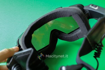 L’unica pecca a nostro avviso sta nella posizione della videocamera. Anziché centrale, come negli occhiali, qui si trova sulla destra. Non sarebbe neanche un problema se non fosse che è leggermente inclinata verso l’interno. Questo, come dimostra il filmato che segue, farà si che il filmato registrato tenderà leggermente a sinistra, di fatto “eliminando” quella porzione di spazio sulla destra che in realtà l’utente vede attraverso la maschera. Un punto di vista se non altro particolare, anche se avremmo forse preferito una videocamera parallela al nostro sguardo o ancor meglio posizionata centralmente proprio come con gli occhiali.
