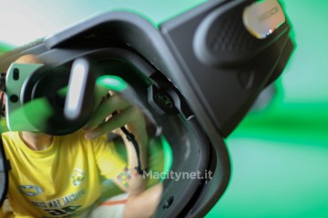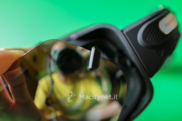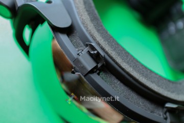 Come spiegato, nella scatola è anche presente una seconda mascherina arancione, preferibile per l’uso notturno visto che quella specchiata funge anche da occhiali da sole respingendo parte della luce. Per rimuovere la mascherina è necessario aprire i due morsetti superiori e ruotare i due blocchi laterali, quindi fare forza per staccarla dalla struttura. Sarà poi necessario procedere al contrario per il montaggio della nuova mascherina.