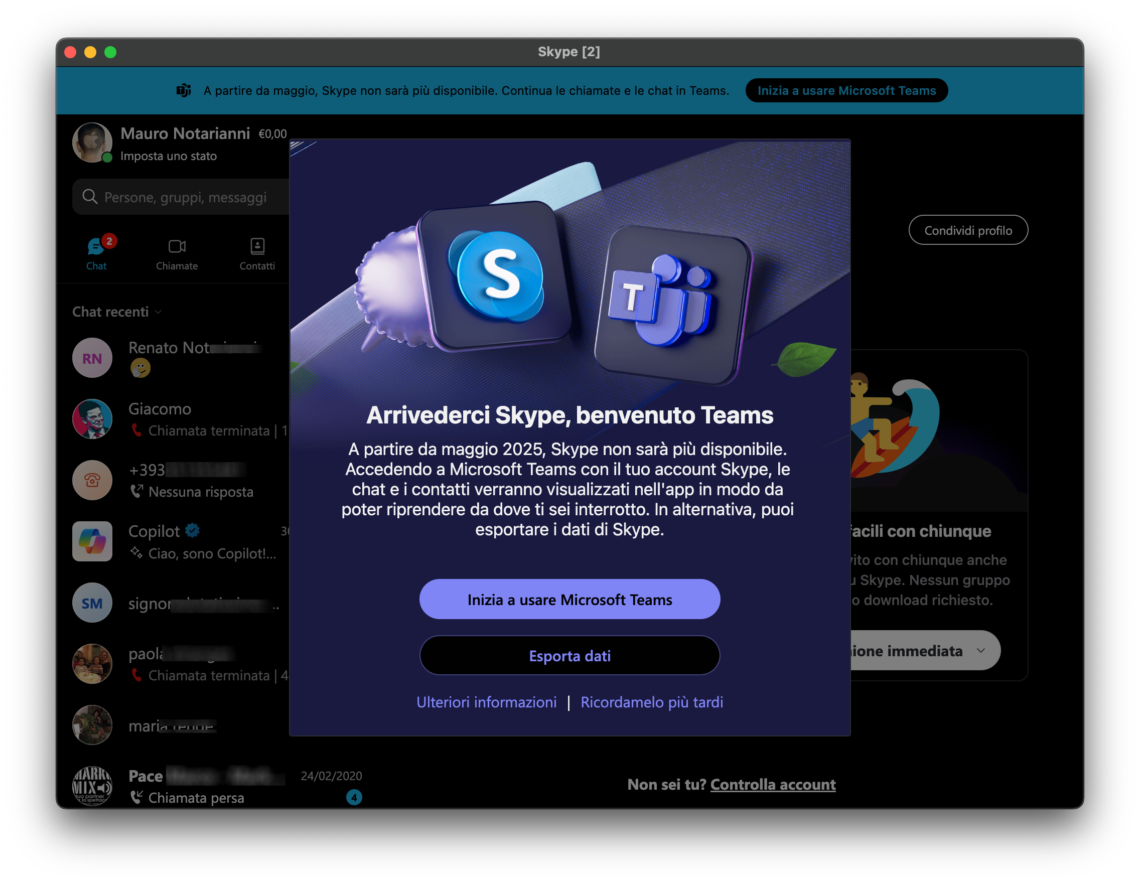 Skype sta per morire, Microsoft spinge gli utenti verso Teams - macitynet.it