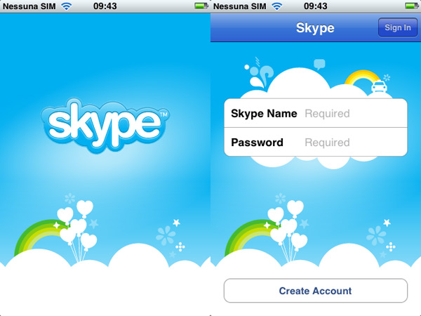Skype funziona su iPhone e touch con Firmware 2.1: può essere scaricato gratuitamente a partire da questa pagina di App Store.