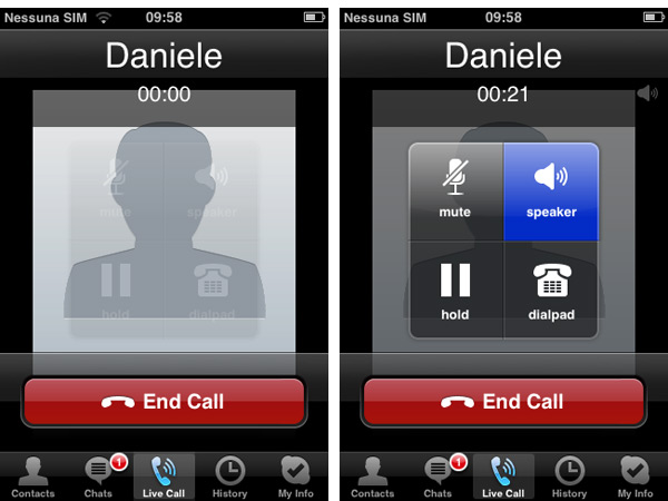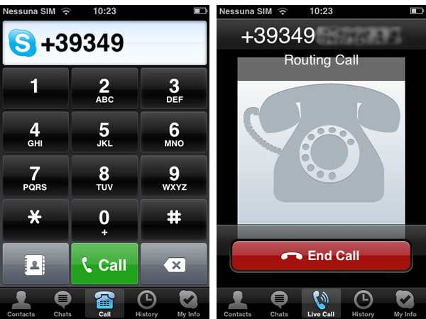 Possiamo subito affermare che Skype, pur non facendo gridare al miracolo, mantiene le aspettative. Il programma si integra alla perfezione con la rubrica dei contatti memorizzata sui tascabili della Mela e da qui è possibile vedere tutti i contatti oppure, premendo un pulsante, solamente quelli attivi. Tutte le funzioni risultano immediate e con un solo tap del dito è possibile passare dall’elenco dei contatti, alla sessione di chat scritta oppure avviare subito una telefonata via Web, gratuita sfruttando il VoIP: questo è possibile solo quando abbiamo a disposizione un collegamento Wi-Fi. Invece quando siamo connessi a Internet tramite rete cellulare non è possibile per il momento avviare telefonate tramite il VoIP, una clausola obbligatoria in Skype così come in tutti gli altri programmi di questo tipo disponibili su App Store, espressamente richiesta da Apple per non ledere gli interessi degli operatori mobile. Infine come ci si aspetta dal programma che ha diffuso a livello mondiale l’utilizzo del VoIP, Skype per iPhone e touch permette di avviare una telefonata verso un numero qualsiasi di telefono fisso o mobile, a patto di disporre di credito sul nostro account Skype: i collegamenti per gli abbonamenti e la ricarica si trovano in fondo a questo articolo.