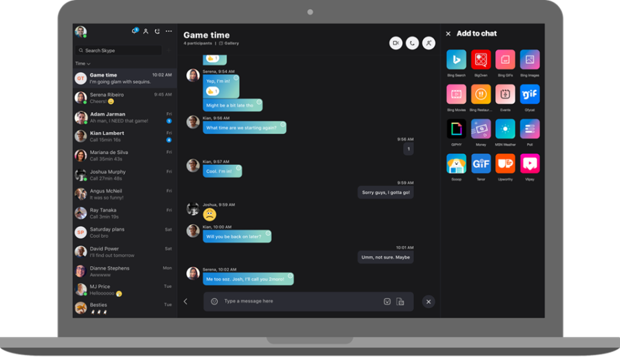 Con la nuova funzionalità Media Gallery Chat sarà possibile sfogliare i media condivisi con un contatto in modo molto simile a quanto accade su iMessage su Mac. Ancora, con il nuovo Skype per desktop sarà possibile lasciare che i propri contatti sappiano quando si è online o non disponibile a chattare, potendo impostare un messaggio personale che condivida automaticamente le proprie attività, quale ad esempio l’ascolto di un podcast: un modo carino per dire ai contatti di non essere disponibile a parlare.