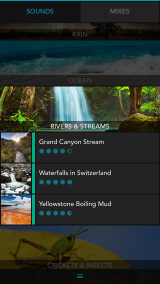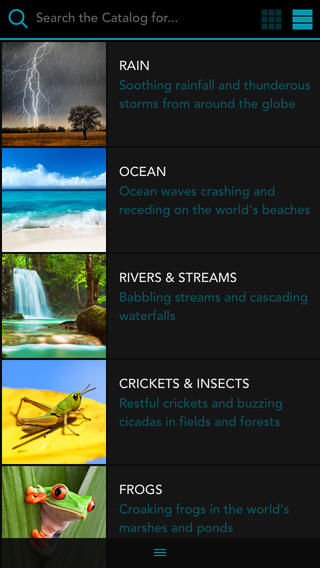 Caratterizzata da un’interfaccia moderna e ottimizzata per iOS 7, SleepSounds HQ è un vero e proprio catalogo di suoni naturali di alta qualità, con suoni abbinati ad immagini rilassanti: i rumori, divisi in 19 categorie (Pioggia, Oceano, Fiumi e ruscelli, grilli e insetti, rane, furin, laghi, vento, fontane, fuoco, uccelli, animali, auto, treni, luoghi pubblici, rumori domestici, campane, industriali e paesaggi sonori) continuano a tenere compagnia all’utente anche quando l’app funziona in background.
