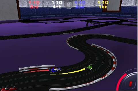 SlotZ Racer, infatti, permette fino a quattro giocatori di sfidarsi su uno stesso iPhone, essendo presente un solo pulsante di controllo per il gioco, che comanda l’accelerazione.