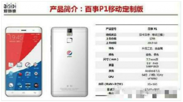 Pepsi P1 sembra sarà uno smartphone Android 5.1 con schermo Full HD da 5,5 pollici, quindi con risoluzione di 1.080 x 1920 pixel, con processore MediaTek MT6592 e 2 GB di memoria RAM. Con capacità di 16 GB di storage e fotocamera da 13 megapixel e 5 MP per quella frontale e batteria da 3.000 mAh. Condizionale e ipotesi sono d’obbligo visto che per il momento non ci sono ancora annunci ufficiali da parte di Pepsi, sembra però che la presentazione avverrà presto, forse già questo 20 ottobre a Pechino, un altro dettaglio che porta a ipotizzare una commercializzazione almeno all’inizio limitata in Cina.