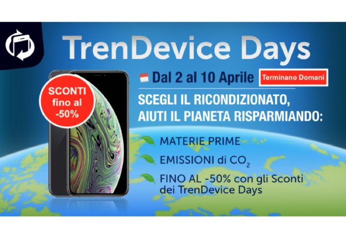 Domani 10 Aprile terminano i TrenDevice Days: ultime occasioni per risparmiare fino al 50% sull’acquisto di Smartphone e Tablet Ricondizionati. TrenDevice è il re-commerce leader in Italia per numero di dispositivi Apple e Samsung ritirati dal mercato a cui l’azienda ha ridato nuova vita, rigenerandoli e rimettendoli in circolo evitando così spreco di risorse di materie prime e CO2 per produrne di nuovi.