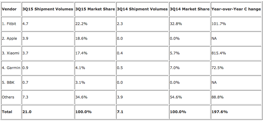 Fitbit prima, Apple seconda, Xiaomi terza. Gli altri non pervenuti, o quasi. È questa la considerazione che sorge leggendo la classifica di vendita degli indossabili stilata da IDC come essa è stata rilevata nel corso del trimestre estivo, quello che è terminato a fine settembre.