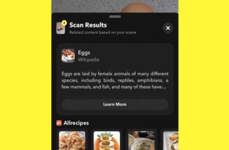 La fotocamera di Snapchat ora è in grado di consigliare ricette in base al cibo che viene inquadrato. Si chiama Food Scan ed è la nuova funzione di scansione associata alla fotocamera dell’app e che già da tempo consente di identificare piante, razze canine e capi di abbigliamento.