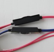 Tornando alle nostre cuffie: l’intercambiabilità della banda è abbinata anche a quella del cavo di collegamento che si stacca completamente dai padiglioni ed è disponibile anche questo in diversi colori e pure indipendentemente dalle cuffie: potete realizzare tutte le combinazioni di colore che volete e soprattutto evitare di buttare un accessorio che vi piace e funziona soltanto perché il cavo si danneggiato per il troppo uso o perché qualche fratellino geloso vi ha tagliato il connettore… Non che il danneggiamento del cavo sembri una cosa automatica: la qualità della realizzazione sembra ottimale per resistere agli stress di un uso frequente.