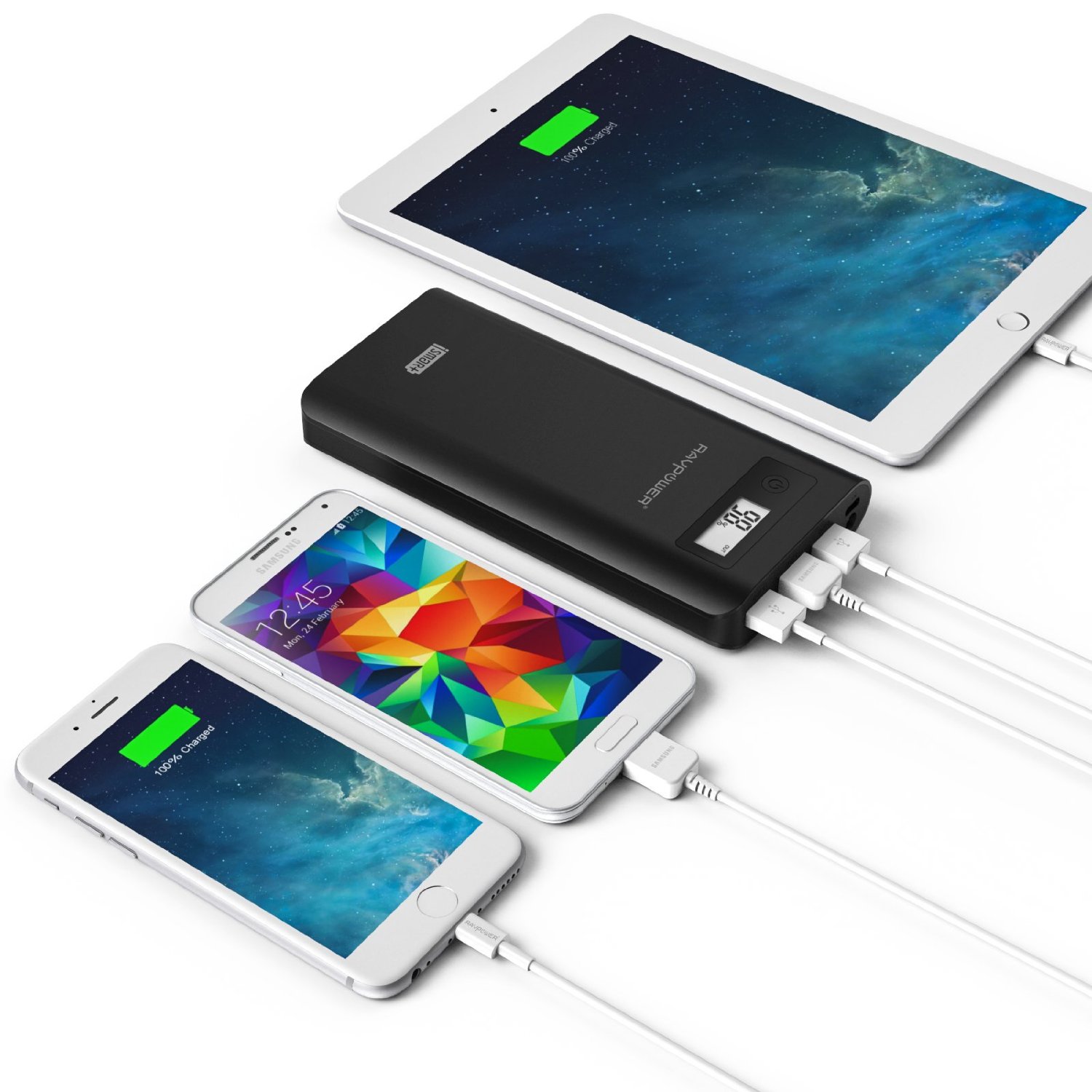 Questa batteria per la sua capacità è l’ideale per chi viaggia. Messa alla prova dalla nostra redazione (click qui per leggere la recensione), la RavPower Xtreme dimostra di essere in grado di ricaricare completamente diversi dispositivi, tra cui iPad e iPhone 6 Plus, senza accusare cedimenti. Grazie alle tre uscite ed una potenza complessiva di 3A, è in grado di ricaricare fino a 3 smartphone insieme, oppure uno smartphone e un tablet senza troppi problemi. Il display LCD integrato permette di scoprire con precisione quanta energia resta a disposizione.