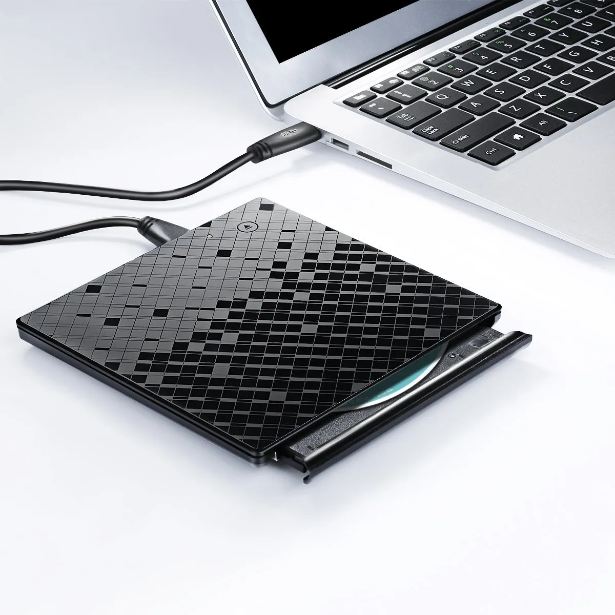 Supporta la lettura di CD, VCD, SVCD, CD-R, CD-RW, DVD-R / DVD-RW e la masterizzazione di CD-RW, CD + RW, DVD-RW, DVD + RW, si collega tramite USB e l’apertura del cassetto si controlla attraverso un pratico pulsante touch.