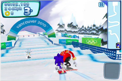 Tutti personaggi più famosi dell’universo Sega tornano su iPhone e touch per una serie di sfide alle discipline olimpiche invernali. Oltre a Sonic il giocatore può scegliere di controllare Tails, Knuckles, Amy Shadow, Metal Sonic e molti altri: in totale il gioco offre 10 personaggi Sega e 4 discipline sportive. Oltre alla gara di snowboard nella specialità del boardercross possiamo cimentarci nel pattinaggio di figura in cui per danzare al ritmo della musica occorre eseguire vari tap con il dito al centro delle figure geometriche che si formano sullo schermo, anche queste a ritmo di musica: per completare l’opera ed eseguire le acrobazie più complesse occorre poi eseguire delle gesture speciali su schermo.
