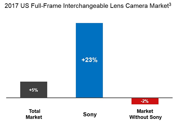 Può essere considerato un sorpasso storico quello di Sony ai danni di Nikon: la società della Playstation ha superato la rivale sul mercato USA, diventando per la prima volta il secondo produttore di fotocamere a ottiche intercambiabili sul mercato USA nel 2017, dietro solamente a Canon.