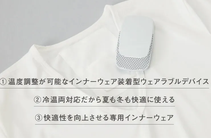 Il programma First Flight dell’azienda prevede il crowdfunding di un “condizionatore d’aria” indossabile, chiamato Reon Pocket, da alloggiare in una piccola tasca posta all’interno di una maglietta speciale. Il dispositivo, da indossare alla base del collo, non funzionerà come un condizionatore tradizionale, ma sfrutterà l’effetto Peltier per abbassare la temperatura senza alcun rumore.