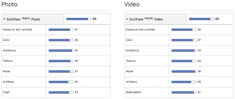 Osservando nel dettaglio i punteggi per i comparti foto e video, il maggior vantaggio di Sony Xperia X Performance rispetto al precedente Sony Xperia Z5 è nel comparto video: nel settore foto il nuovo Sony Xperia X Performance ottiene infatti lo stesso punteggio del predecessore, 88 su 100, mostrando un modesto se non inesistente miglioramento in termini di risultati.