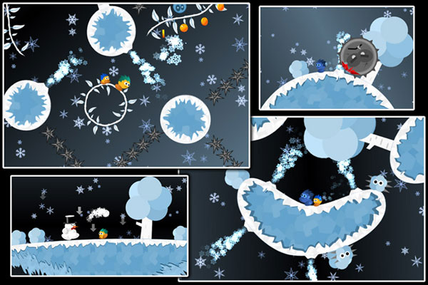 Invece di creare un joypad omnidirezionale, Soosiz richiede semplicemente due pulsanti, per andare a destra e sinistra, più il classico salto. Quella che potrebbe sembra una limitazione dei movimenti, è poi brillantemente risolta da una fisica di gioco originale e innovativa, anche se chiaramente ispirata a Super Mario Galaxy. All’interno di un mondo 2D dalla grafica curatissima e in puro stile cartoon, Soosiz può saltare sulle piattaforme vicine indipendentemente che queste si trovino sotto, sopra o ai nostri lati. La gravità e l’orientamento assumo un significato completamente diverso in Soosiz: agli spostamenti del protagonista infatti segue una rotazione completa dello schemo di gioco che riporta l’inquadratura dritta al nostro sguardo.