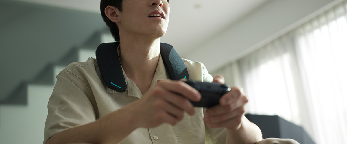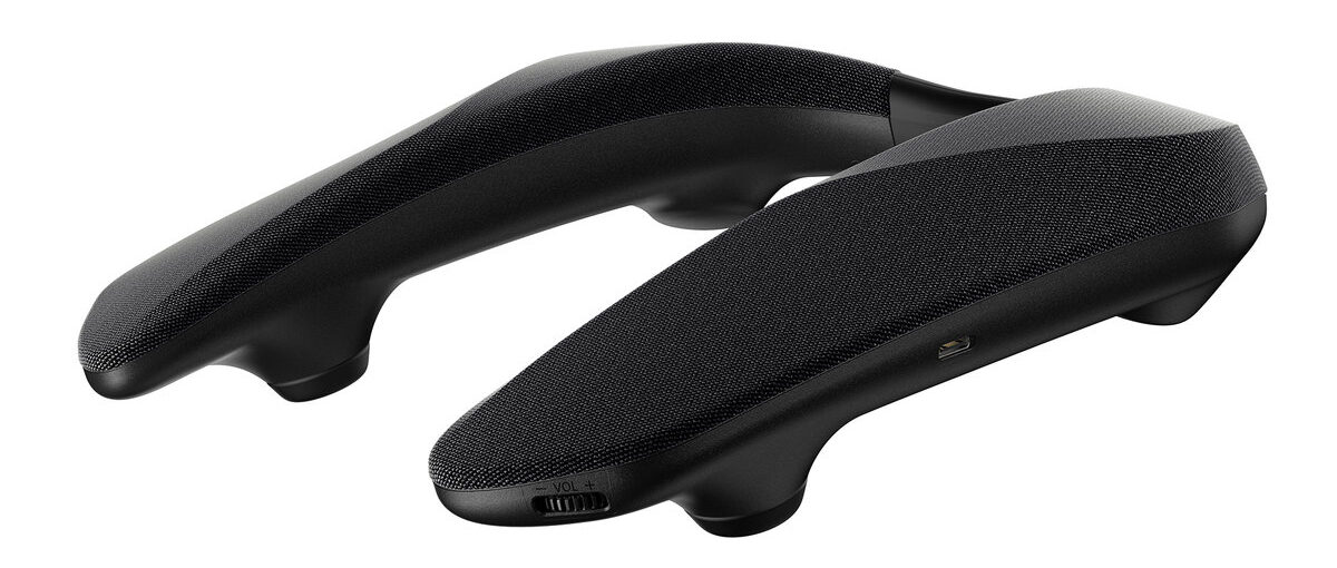 Eliminando la pressione esercitata da cuffie di grandi dimensioni, è stato eliminato anche il fastidio che ne deriva. Panasonic riferisce di “un’approfondita analisi della fisiologia del collo e delle spalle”, che ha permesso di sviluppare una struttura leggera che promette una vestibilità confortevole. I quattro diffusori sono posizionati in maniera ottimale per generare “un campo sonoro perfetto”.