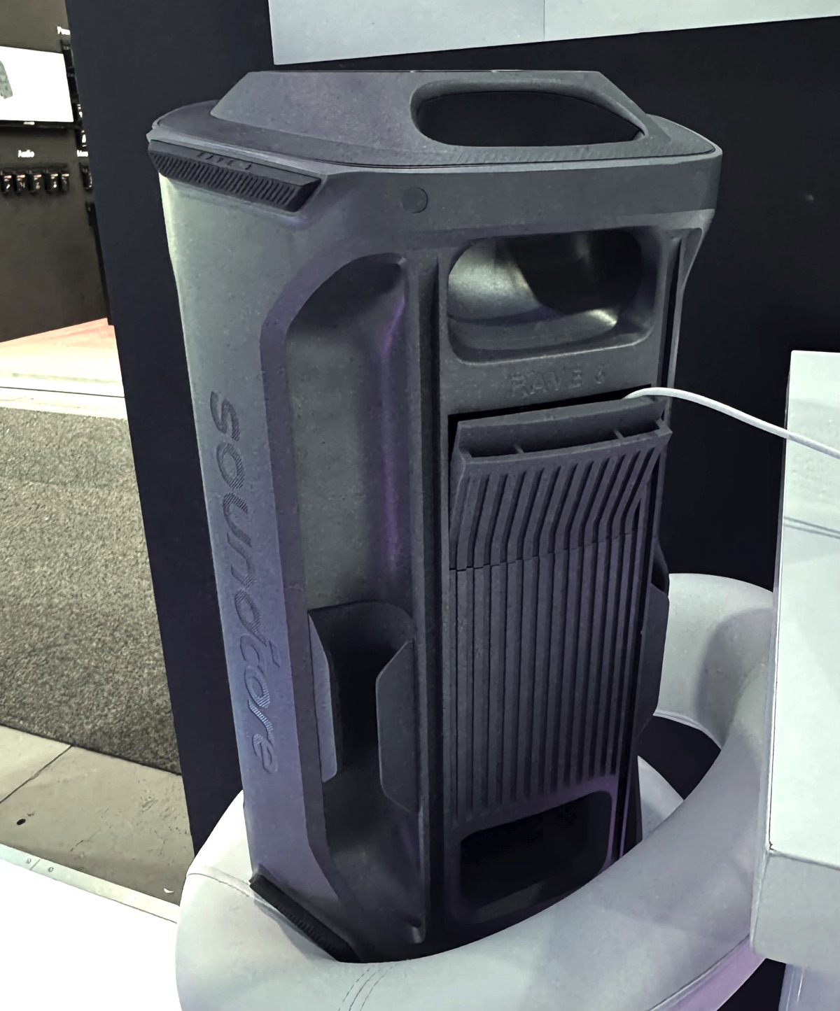 Rave 3S è un altoparlante da 200 watt progettato per riempire spazi fino a 100 metri quadrati. La sua parte frontale integra luci LED colorate, sincronizzabili con la musica tramite un’app dedicata, per creare uno spettacolo anche visivo.