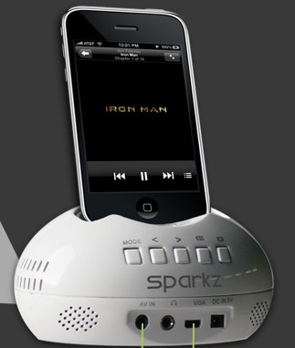 Sparkz è un docke per iPhone e iPod che svolge una semplice ma interessante funzione: funge da proiettore portatile per i dispositivi della Mela. Una comodità ulteriore per chi vorrebbe poter avere sempre con sè la possibilità di “proiettare” in maniera improvvisata immagini e video su una superficie adatta.
