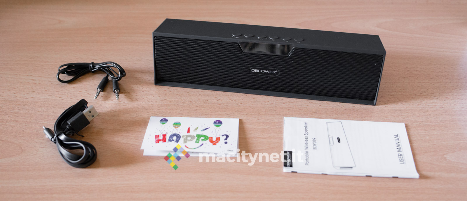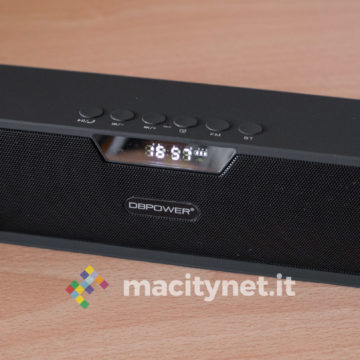In redazione è da pochi giorni arrivato DBPower SDY019, uno speaker Bluetooth che si differenzia dalla massa principalmente per due ragioni. Da un lato la sua forma allungata, che lo rende esteticamente simile a una soundbar, dall’altro le numerose possibilità di utilizzo, che vanno dalla riproduzione della musica tramite Bluetooth o via cavo AUX alla lettura della musica archiviata su microSD e chiavette USB. Completa il cerchio la radio FM integrata e la modalità sveglia che trasforma la cassa in un accessorio da posizionare anche sul comodino della camera da letto.