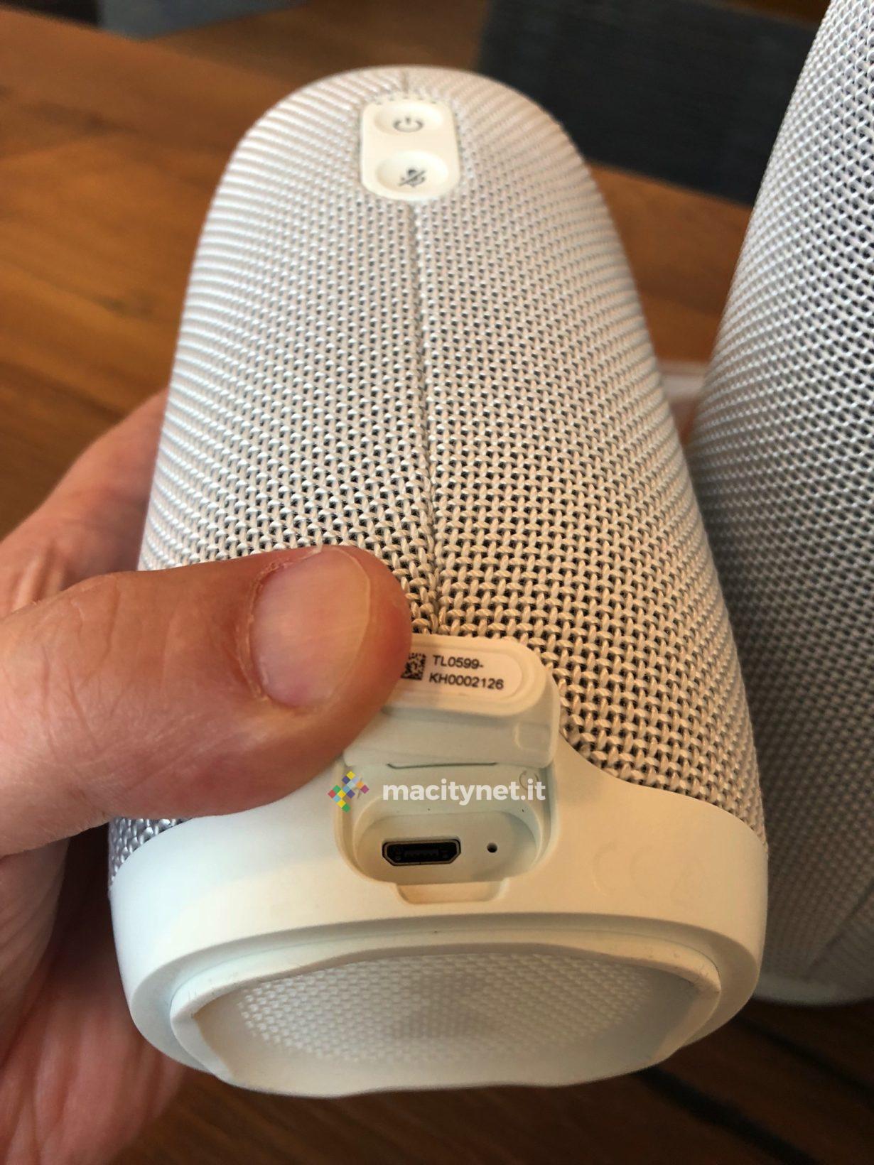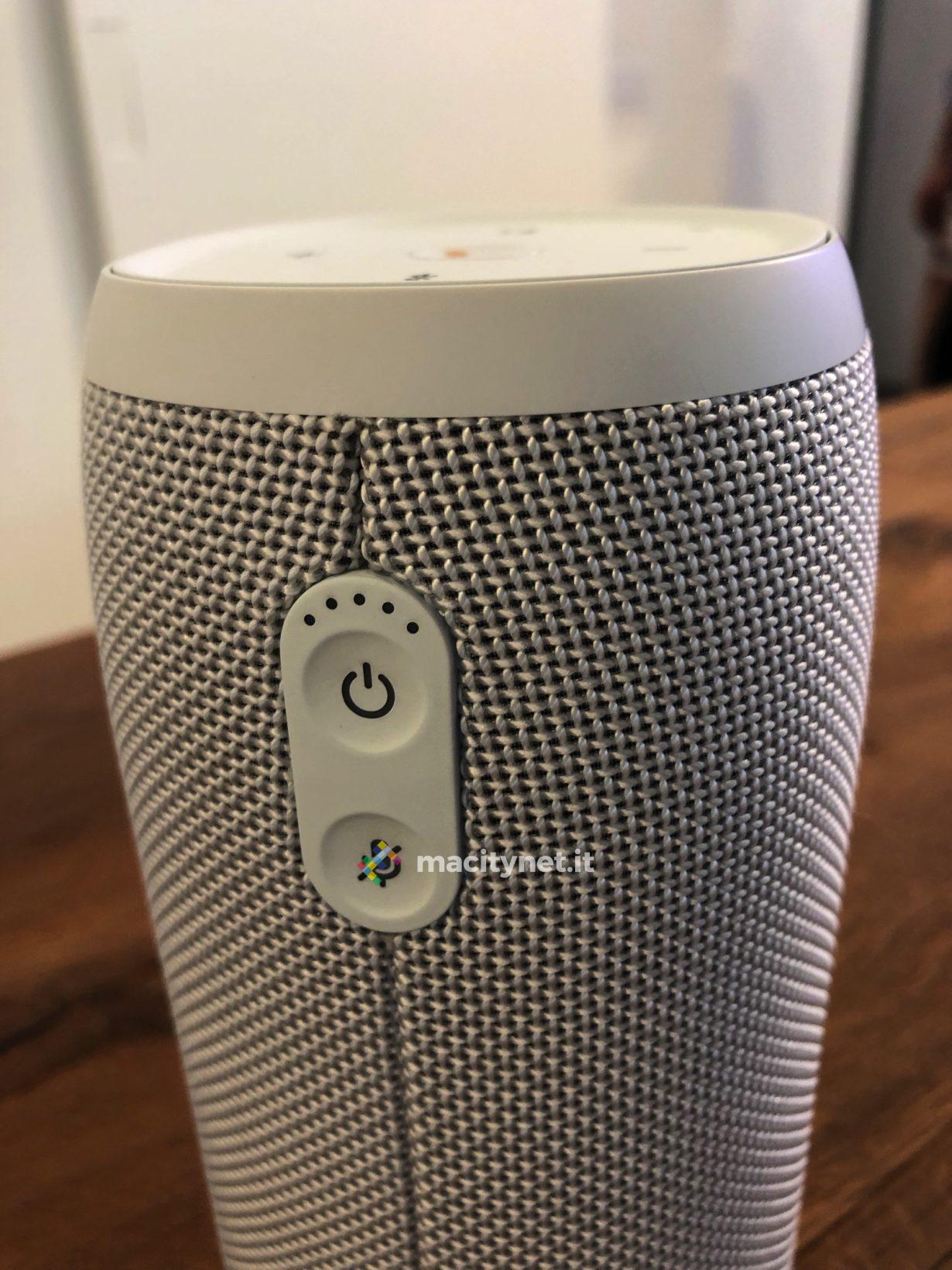 Ha una uscita di 2×8 W, batteria della durata di 5 Ore (batteria da 4000mAh) ed è Waterproof IPX7, le dimensioni sono 86x86x169 mm.