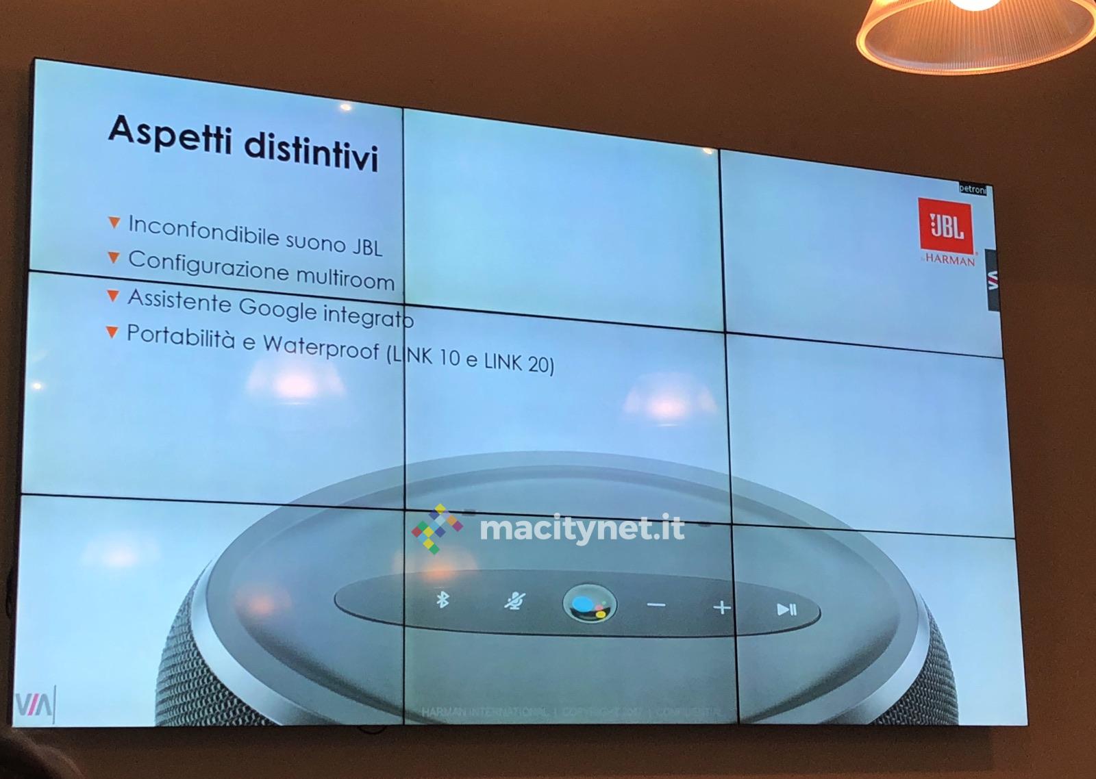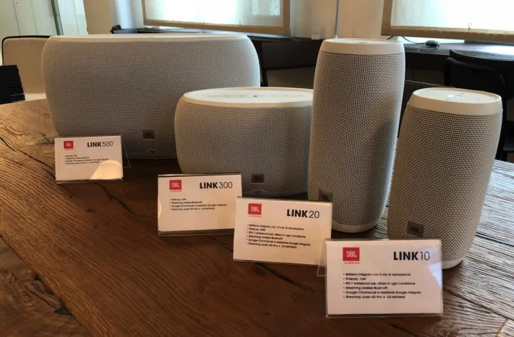 Macitynet ha assistito alla presentazione e ha realizzato una piccola galleria hands on con tutti i 4 modelli. La prima impressione è la conferma della qualità dei prodotti JBL che portano alla gamma degli speaker compatibili con Google Assistant una varietà e potenzialità d’uso che i due modelli base di Google già sul mercato non possono avere. In questo modo l’offerta degli speaker smart compatibili amplia il mercato portandolo fino al top della richiesta di sistemi compatti e versatili.