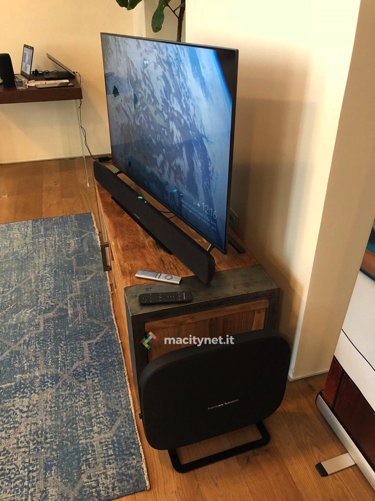 La demo negli immensi locali di Casa Lago in una zona giorno da 70 mq di pianta per 4 metri permetteva al modello Link 500 di fornire una buona pressione acustica e non parliamo della combinazione dei diversi speaker tra loro combinati con la soundbar Omni Bar Plus di Harman Kardon.
